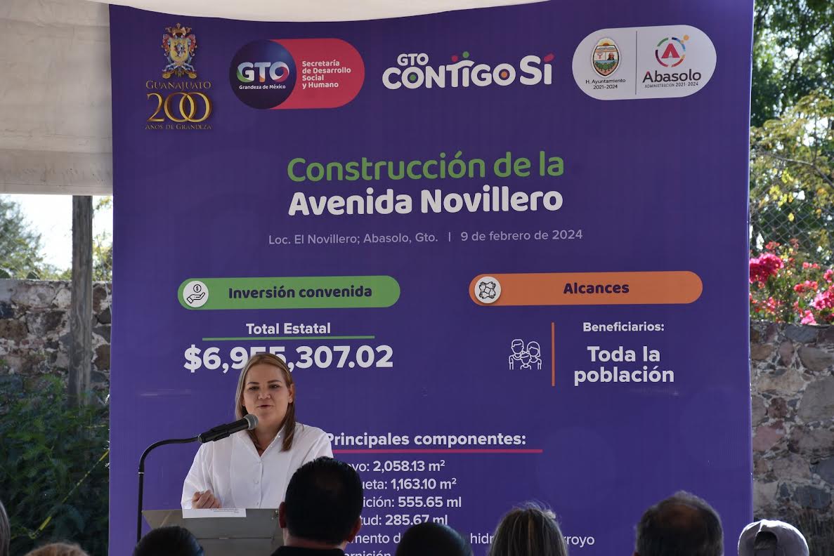 Abasolo, Gto. 09 de febrero de 2024.- La unión hace la fuerza y la muestra es la obra de la pavimentación de la Avenida Novillero – Ojos de Agua, en la que destacan las gestiones de la Presidenta Municipal Rocío Cervantes Barba y el representante del Club migrante Comunidades Ojos de Agua y Novillero Unidos CODAYNU, Andrés Solís Pantoja, las cuales, hicieron ante el Gobernador del Estado Diego Sinhue Rodríguez Vallejo para conseguir la construcción de esta urbanización.