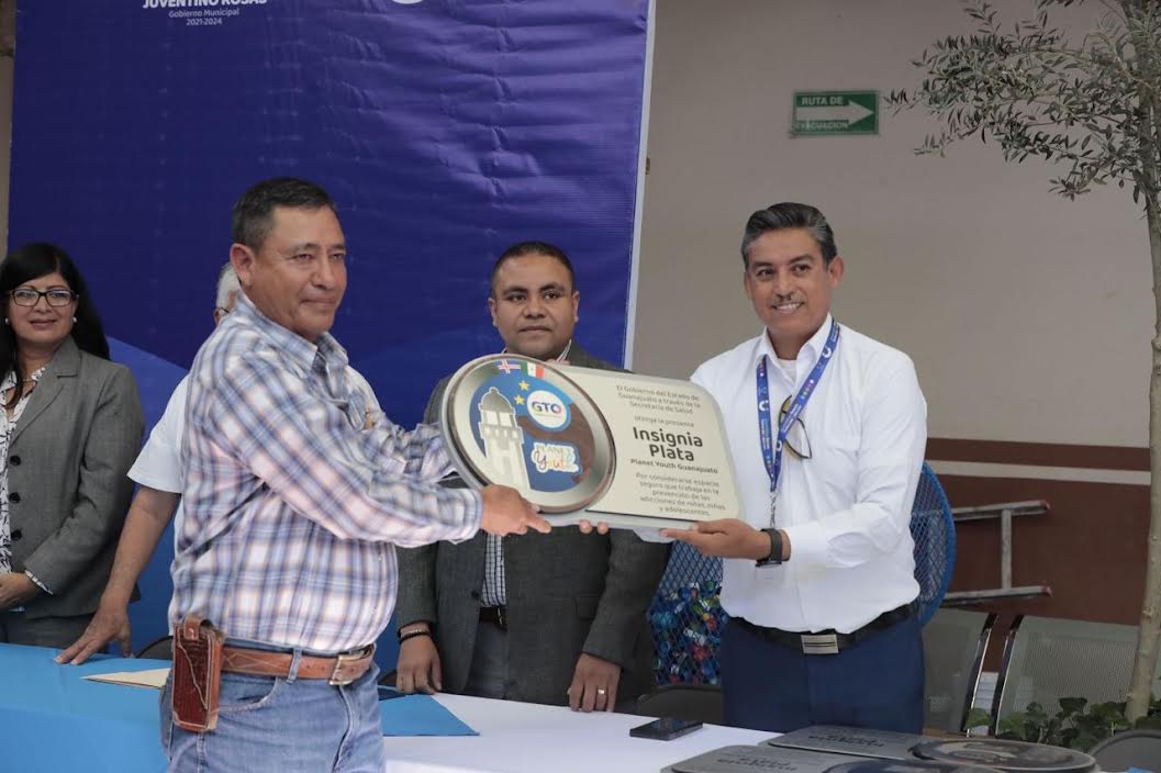 Santa Cruz de Juventino Rosas; 29 de febrero del 2024. El Sistema de Salud Gto otorgó la Insignia Plata Planet Youth a 10 instituciones educativas en Juventino Rosas comprometidos con la prevención de adicciones.