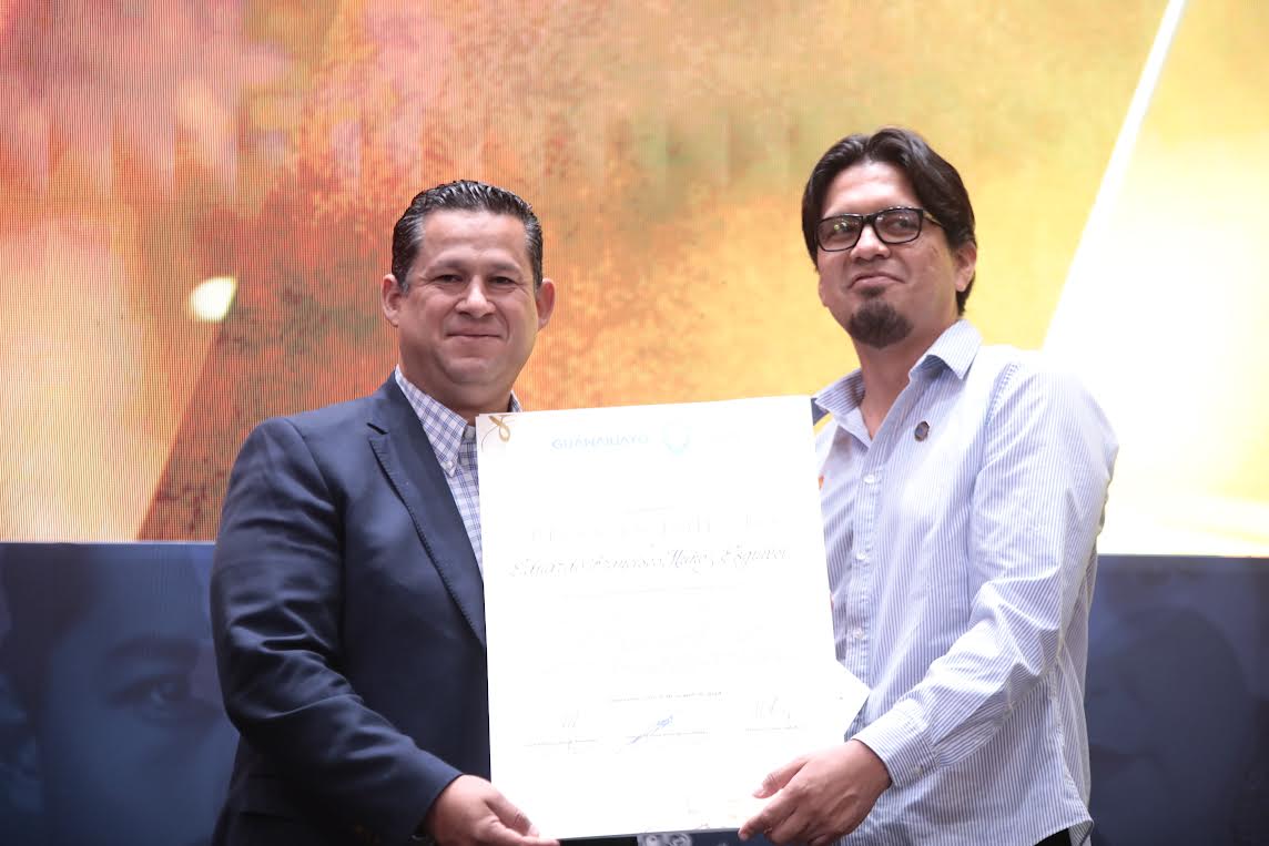 Y el mayor reconocimiento para Eduardo Francisco Muñoz Esquivel quien resultó ganador de este concurso. “Muchas felicidades. Tu inspiración y tu talento, expresados en la letra y la música del que a partir de hoy ha de ser el Himno del Estado, resonarán en todas partes enalteciendo a Guanajuato”, enfatizó Rodríguez Vallejo.