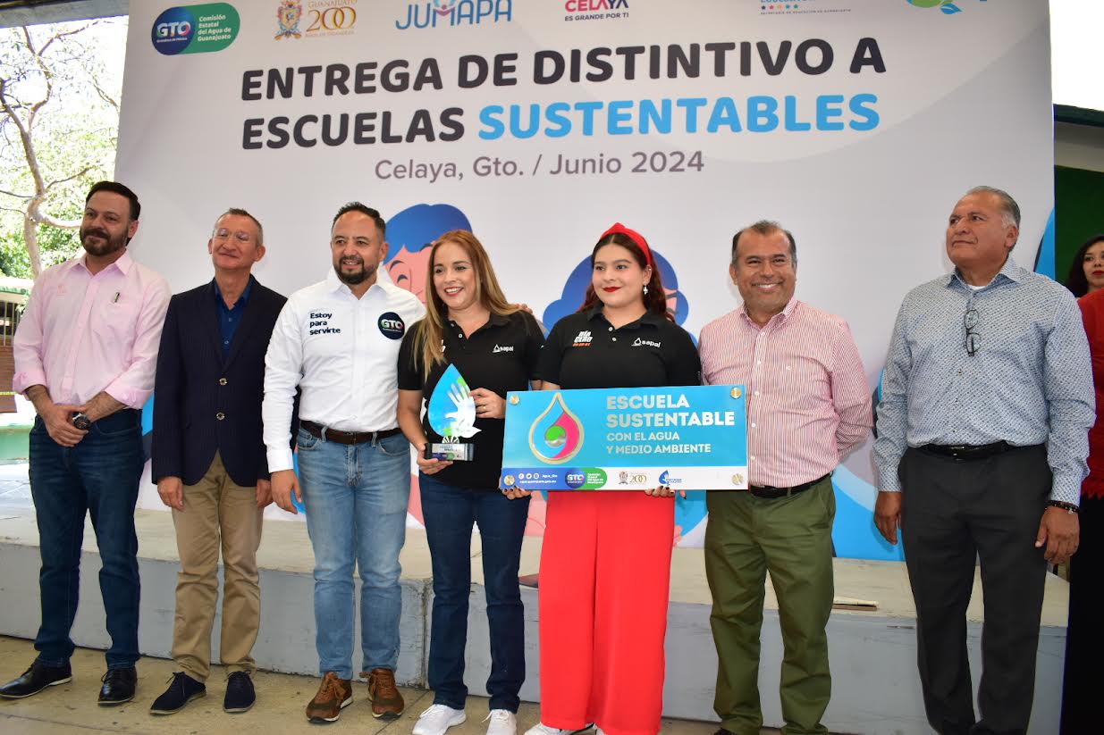 La entrega del Distintivo estuvo a cargo del Secretario de Educación de Guanajuato Jorge Enrique Hernández Meza, Juan Gabriel Segovia Estrada Subdirector General de Gestión Social de la Comisión Estatal del Agua de Guanajuato, Roberto Castañeda Tejeda Director General de la Junta Municipal de Agua Potable y Alcantarillado de Celaya, así como de integrantes del H. Ayuntamiento de Celaya.