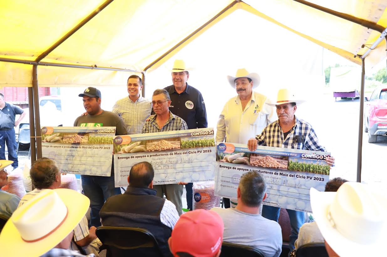 Salvatierra, Gto., 5 de agosto del 2024.- El Gobierno del Estado no abandona al campo de Guanajuato, y por ello hoy entregó apoyos económicos a productores de maíz, así como semilla de frijol, fertilizante y agroquímicos, para fortalecer al sector agroalimentario de Salvatierra.
