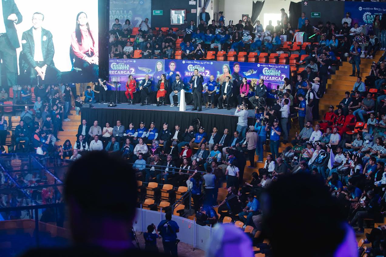 León, Gto. 17 de septiembre de 2024.- El Gobernador del Estado, Diego Sinhue Rodríguez Vallejo, inauguró el torneo Batalla de Robots Recarga2, evento en el que se exhiben las habilidades de las y los jóvenes guanajuatenses, a fin de que puedan experimentar una evolución de la aplicación de los conocimientos en robótica, adquiridos durante su formación.