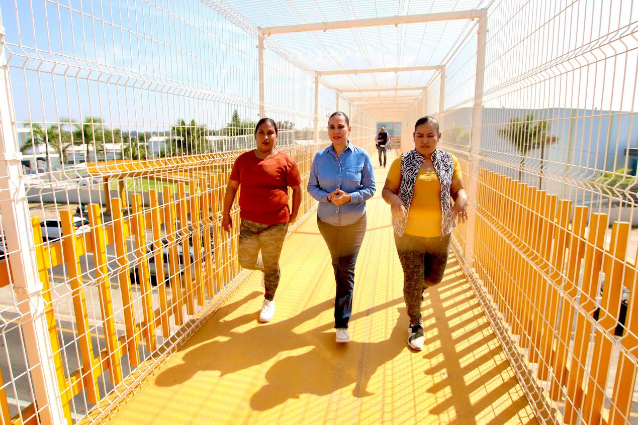 El puente, que genera un entorno renovado, funcional, atractivo y sostenible, mejora la conectividad de las y los habitantes. Está construido de acero estructural, rampas, banquetas, columnas, zapatas aisladas de concreto reforzado, barandal de herrería y guarnición trapezoidal.