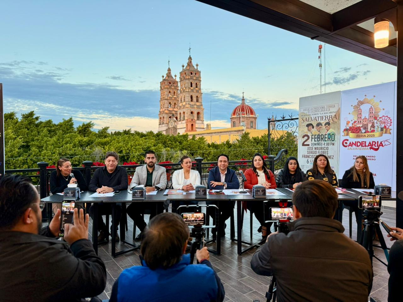 Salvatierra, Guanajuato. 13 de enero 2025. El Presidente Municipal José Daniel Sámano Jiménez acompañado de los Regidores del Ayuntamiento y la Directora de Turismo Genoveva Irais Fernández Monroy, así como la representante de la empresa Mexqro Itzagari Flores, presentaron el programa cultural, deportivo, social y artístico de la Feria de la Candelaria 2025, a llevarse a cabo del 31 de enero al 9 de febrero.