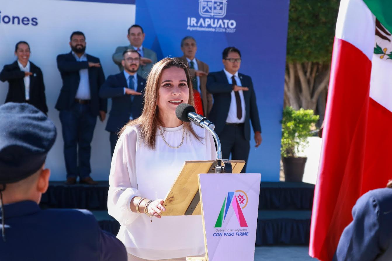 La presidenta de Irapuato, Lorena Alfaro García, tomó la protesta de las escoltas abanderadas y destacó la relevancia que la bandera tiene para las y los mexicanos, pues simboliza nuestra independencia, instituciones, así como la integridad de nuestro territorio.