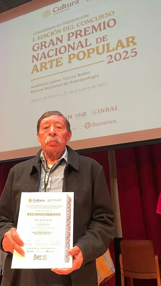 Irapuato, Gto., 24 de octubre de 2025.– Dos artesanos guanajuatenses fueron reconocidos con el segundo lugar en la 50ª. edición del Concurso Gran Premio Nacional de Arte Popular 2025, organizado por la Secretaría de Cultura del Gobierno de México a través del Fondo Nacional para el Fomento de las Artesanías (Fonart).