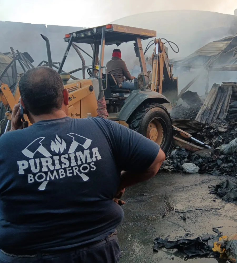 - – “Hay un malestar real y urgente por atender a la población que está alrededor de este incendio, pero mayormente de quienes están en el lugar. El Municipio está abasteciendo a Bomberos y Protección Civil de recursos de maquinaria, agua, y se agradece a la población que ha sido empática en apoyar al personal. Nos preocupa la salud de la comunidad, por eso escuchamos y por eso movilizamos intervención ya durante 3 días, pero el riesgo por el colapso de la nave sigue e impide mayor agilidad en la activación, esperamos conforme a los avances, que pueda concluirse lo antes posible esta misma semana”, indicó Roberto García Urbano.