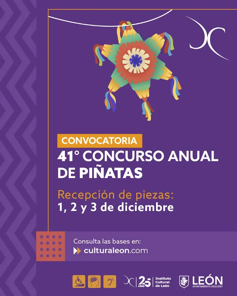 León, Guanajuato, a 12 de noviembre de 2025. El Instituto Cultural de León invita a participar en el 41° Concurso Anual de Piñatas, con la finalidad de preservar las manifestaciones culturales tradicionales y fomentar la creación artística popular, impulsando a participar en la elaboración de piezas que, además de su belleza visual, representen la riqueza simbólica de esta expresión festiva.