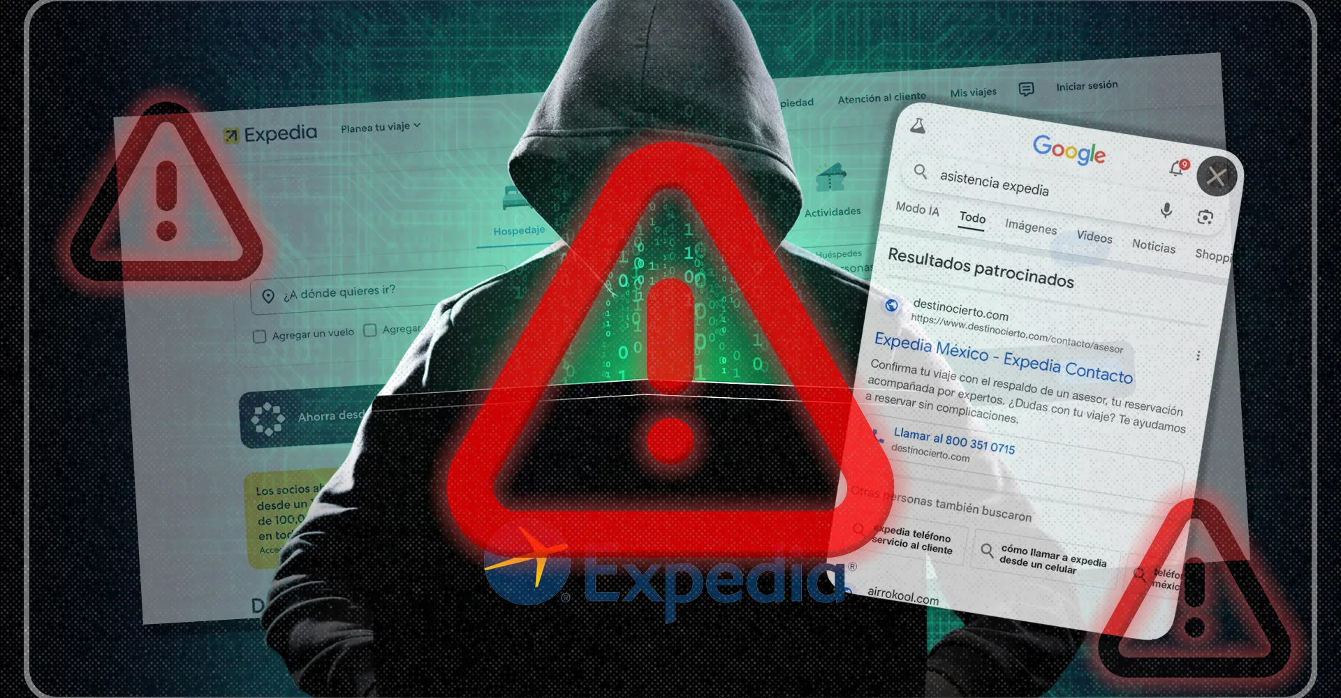 Cientos de usuarios reportan haber sido estafados hasta por más de 200 mil pesos, por supuestos representantes de la agencia de viajes Expedia. Mediante un mecanismo pulido de manera milimétrica, un grupo de estafadores ha creado todo un esquema para desfalcar cuentas bancarias de usuarios que intentan reservar viajes o hacer cancelaciones de reservas previas realizadas desde la página oficial de Expedia. En algunos casos el dinero ha terminado en cuentas de casinos manejadas por