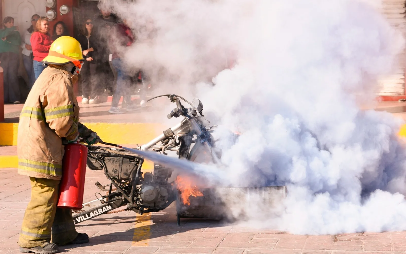 • Bomberos atendieron el incendio originado en la motocicleta.