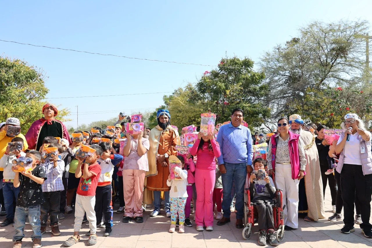 La Caravana de Reyes Magos avanzó sobre ruedas y a pie, con el propósito de asegurar que ningún sueño quedara pendiente, llevando consigo motivos para sonreír: palabras, buenos deseos, carriolas, paquetes de carros, camiones de volteo, muñecas y la posibilidad de la foto del recuerdo.
