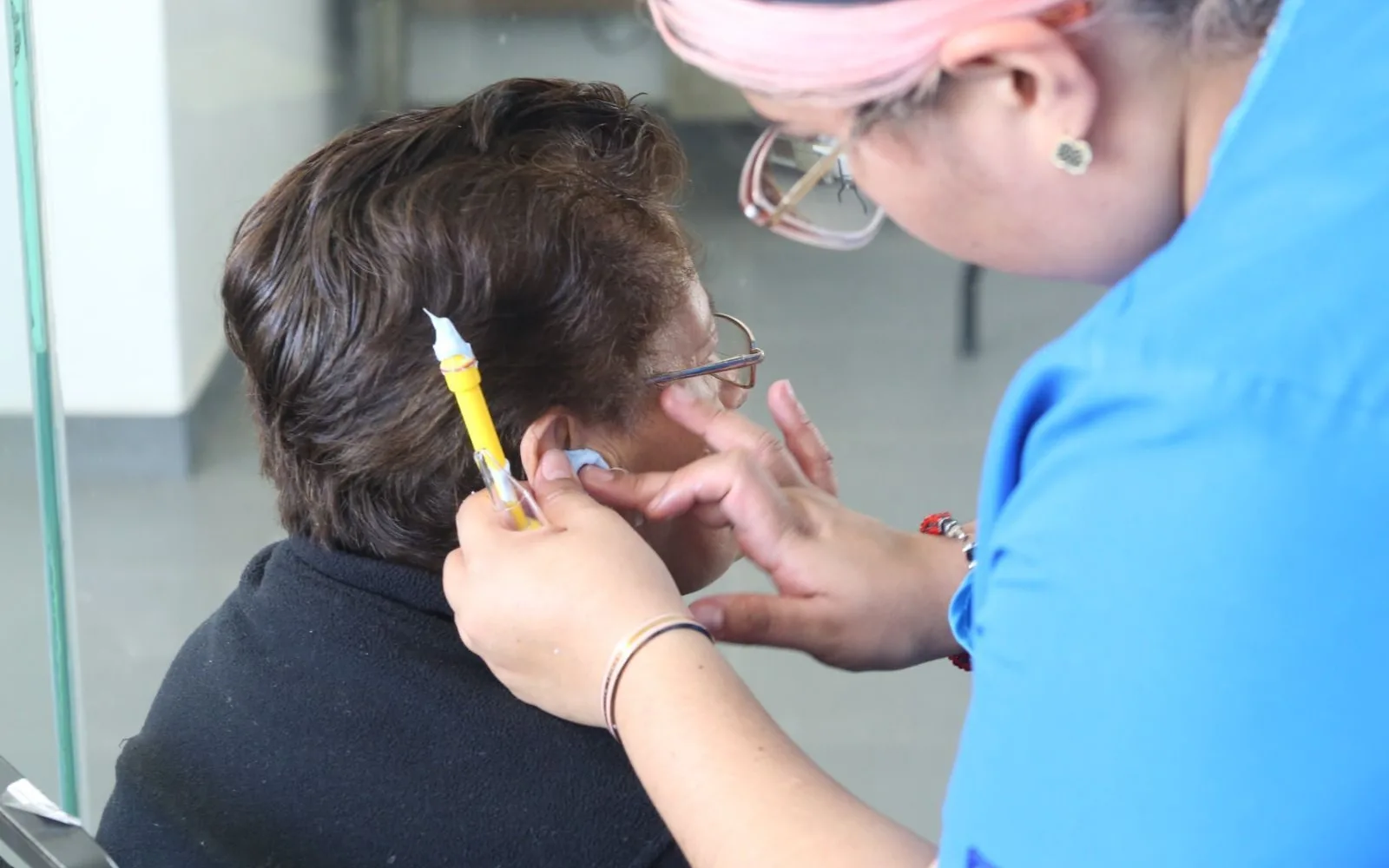 Lo anterior consistió en una evaluación clínica para determinar la situación en la que se encuentra su capacidad auditiva, el tipo de auxiliar funcional que requiere la persona beneficiaria, así como la toma de molde auditivo que permitirá la adaptación del aparato auditivo en un segundo momento.