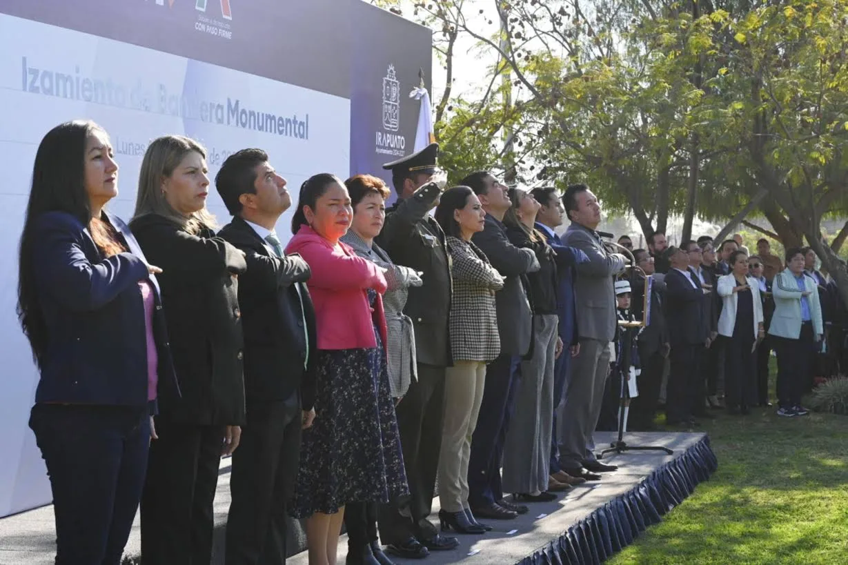 Irapuato, Gto. 09 de febrero de 2026. – En un ambiente de respeto, unidad y civismo, autoridades del Gobierno de Irapuato, encabezadas por la presidenta municipal Lorena Alfaro García, llevó a cabo el tradicional izamiento de bandera correspondiente al mes de febrero.