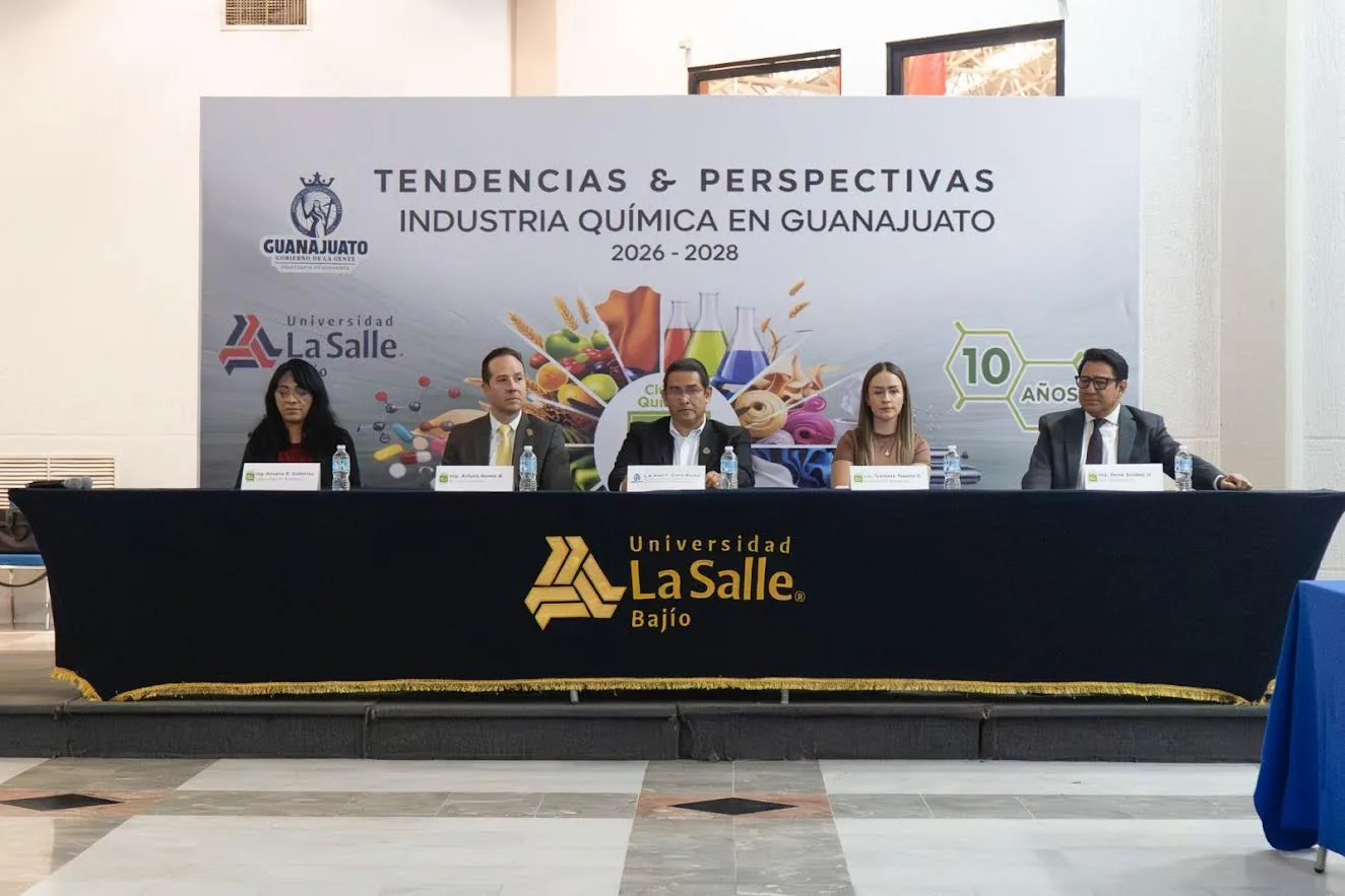 León, Gto., 14 de abril de 2026.- Con el objetivo de fortalecer la competitividad de los sectores productivos, la Secretaría de Economía participó en el Foro “Tendencias y Perspectivas de la Industria Química en el Estado de Guanajuato”, organizado por la Universidad La Salle Bajío, donde se definieron las prioridades y líneas de acción que orientarán el desarrollo de esta industria estratégica rumbo al periodo 2026–2028.
