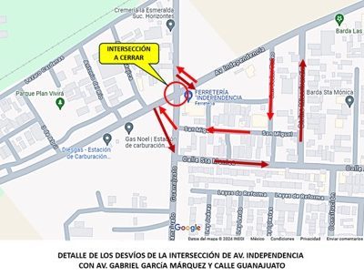 Del martes 14 al jueves 30 de mayo Se realizará obra de pavimentación e instalación de drenaje sanitario Irapuato, Gto. 13 de mayo del 2024.- La intersección vial d