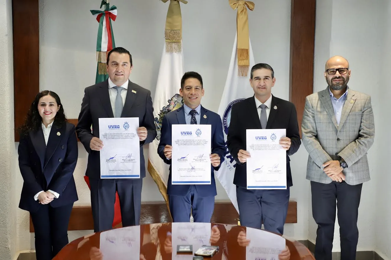 En el acto protocolario participaron el presidente del Consejo Consultivo del Sistema DIF Estatal, Juan Carlos Montesinos Carranza; el Rector de la UVEG, Ricardo Narváez Martínez y el Director General del Sistema DIF Estatal, José Alfonso Borja Pimentel, quienes destacaron que esta alianza marca un paso estratégico para fortalecer el impacto de los programas sociales.